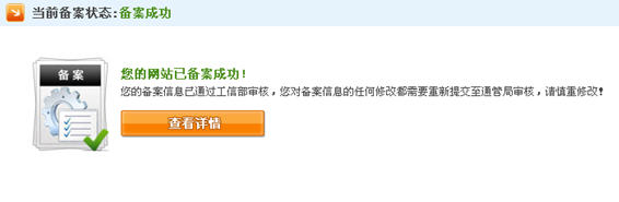 備案信息通過(guò)審核