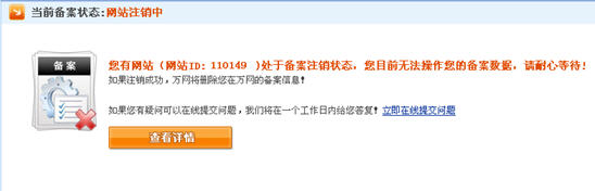 通過(guò)萬(wàn)網(wǎng)工作人員正在注銷備案信息