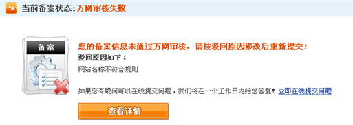 7、萬(wàn)網(wǎng)審核失敗