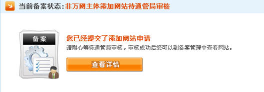 17、非萬(wàn)網(wǎng)主體添加網(wǎng)站待通管局審核